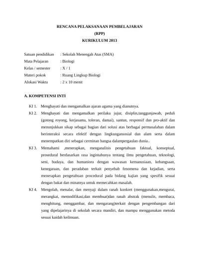 Rpp ruang lingkup biologi sesuai kurikulum 2013 · ki 2.