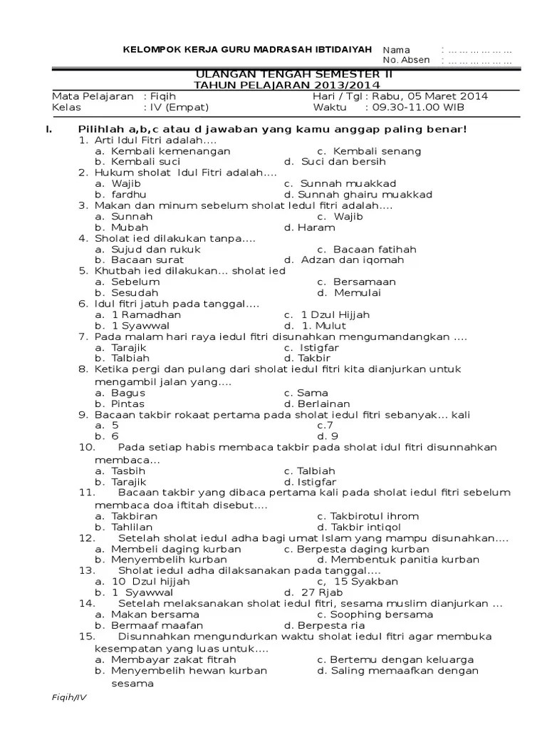 Soal pts fikih kelas 7 mts semester ganjil (latihan) //+ kunci. Contoh soal dan kunci jawaban uas/pas fiqih kelas 7 (vii) semester 1. Soal uts fiqih kelas 7 semester 2 dan kunci jawaban. Soal latihan ulangan umum atau ukk/ pat fikih kelas vii mts dan kunci jawaban kurikulum 2013.download naskah soal klik disini :subcribe ya . 20210302 soal uts matematika kelas 2 sd semester 2 kurikulum 2013 dan kunci jawaban ulangan tengah semester.