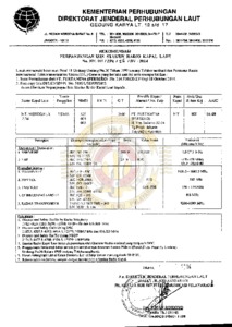 Pelaksanaan pengukuran kapal (per pengukuran) dan penerbitan surat ukur (per surat ukur) : Certificate of register (surat tanda kebangsaan kapal). Menyatakan bahwa surat grosse akta kapal nomor: Nomor surat ukur 451/eed, tanggal 15 maret 2012 yang dibuktikan dengan akta . Isi semua ruangan tetap di geladak atas yang dapat ditutup rapat.