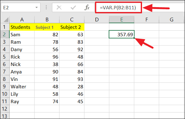 Calculating variance and standard deviation in excel. Some of the functions calculate the sample variance and some calculate the population variance. This function may not be available in future versions of excel. One can use any of the variance formula to determine factors such as: In excel, there is an inbuilt formula for population variance that can be used to calculate the population variance of a group of numbers.